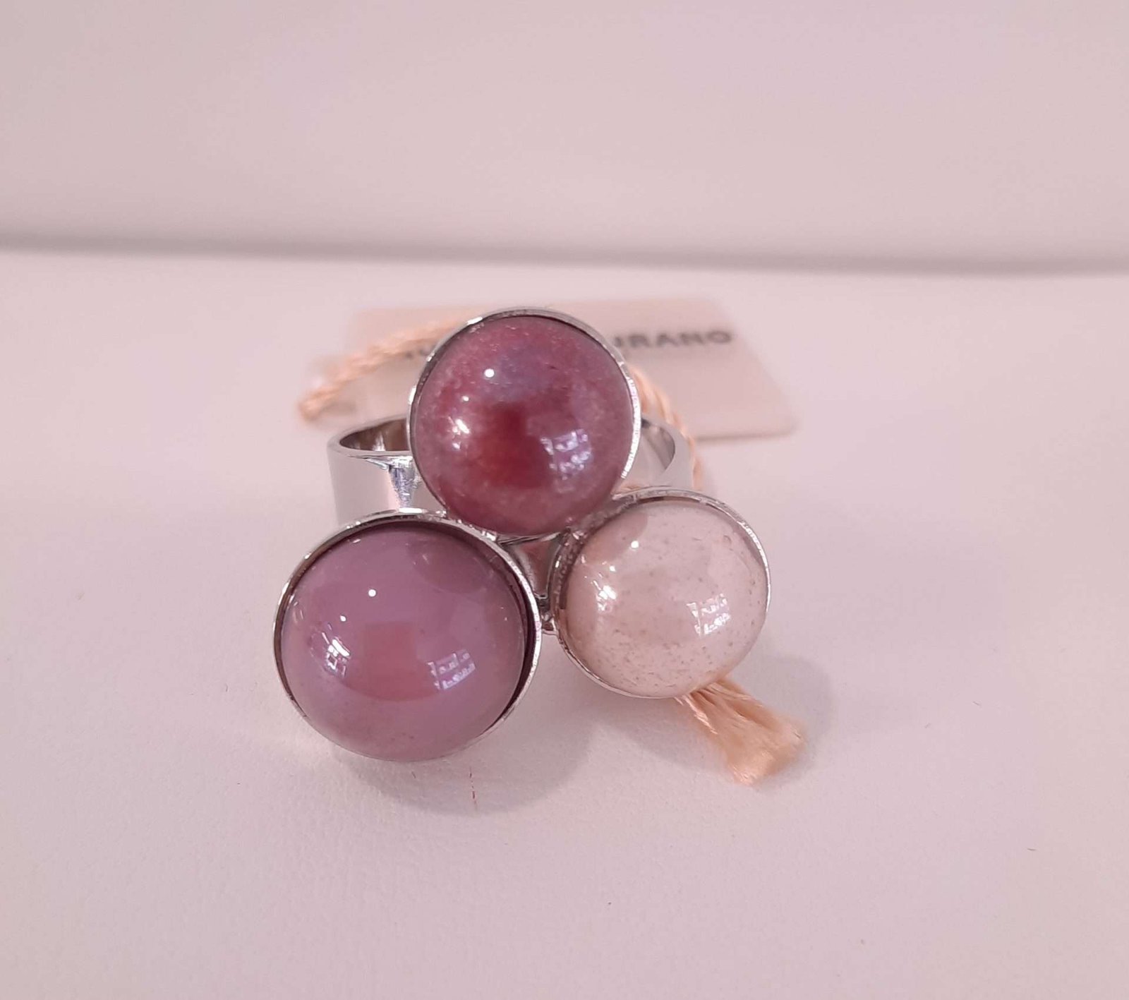Anello Trittico donna vetro Murrina Murano rosso collezione Audrey, in acciaio, ottone smaltato e vetro, ogni particolare in vetro è realizzato a mano dai Maestri vetrai Muranesi, interamente Made In Italy.