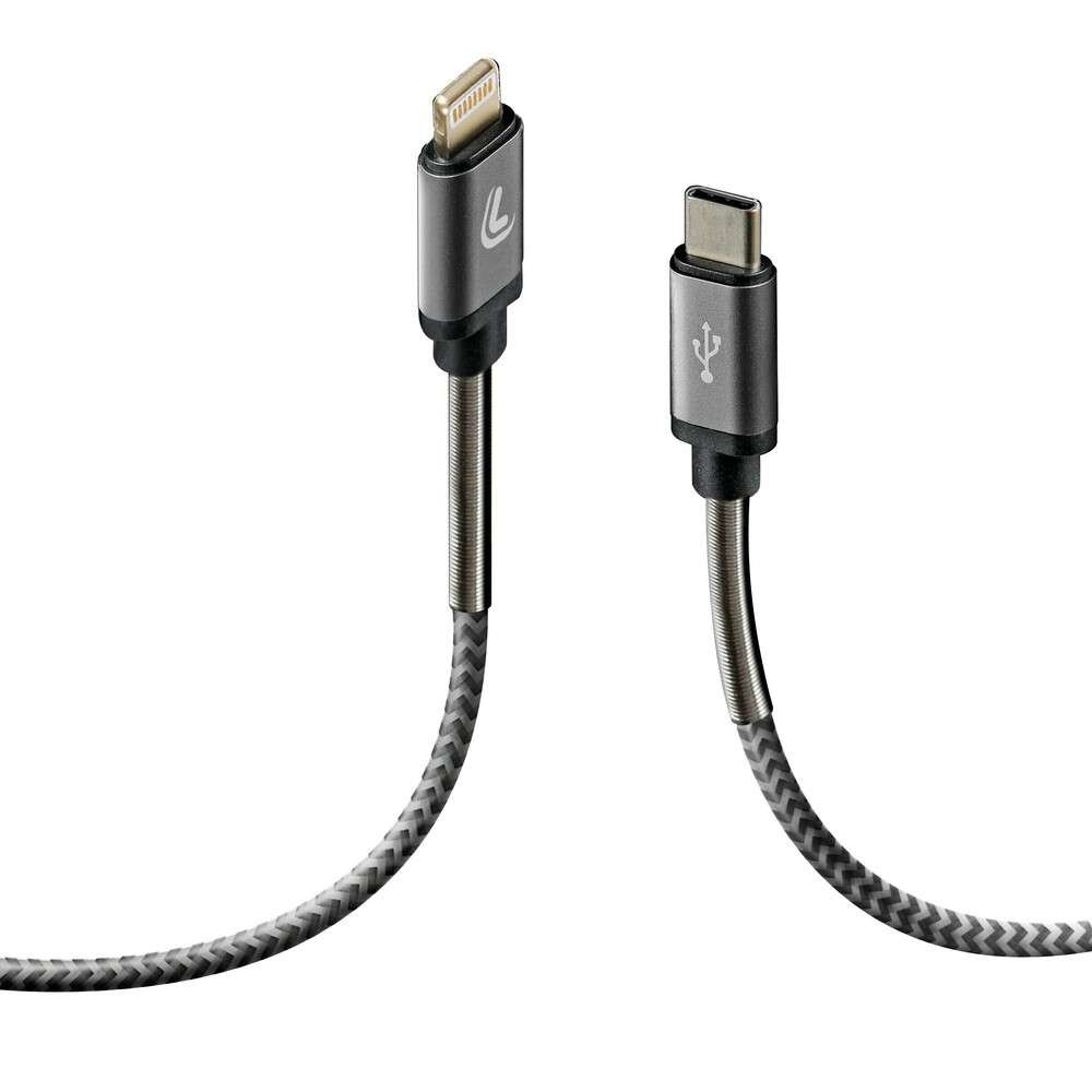 Cavo di ricarica e dati. Compatibile con la tecnologia Power Delivery. Guaina in nylon intrecciato, ultra resistente, collo rinforzato e struttura in alluminio.