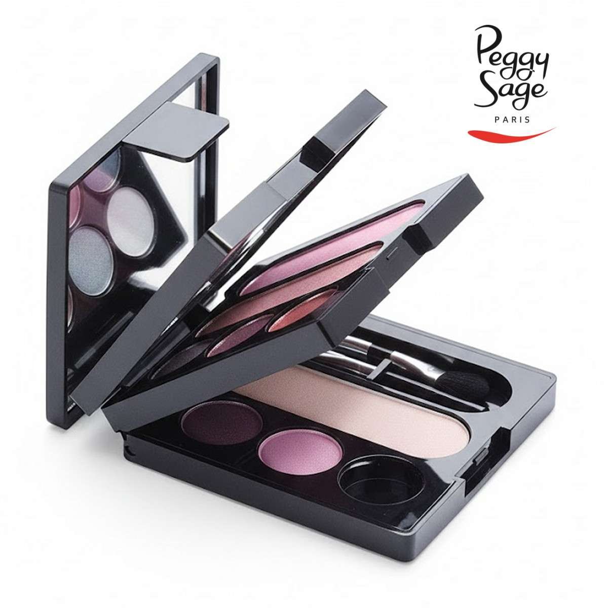 Una palette per il trucco molto pratica con specchio, applicatori, e pennello per il fard.