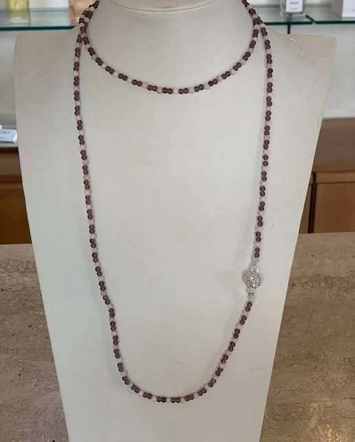 Raffinata ed elegante, questa collana artigianale è realizzata con cura e attenzione ai dettagli. Le perline bianche, luminose e delicate, sono armoniosamente intervallate da perline viola dal tono deciso, creando un contrasto sofisticato e versatile.