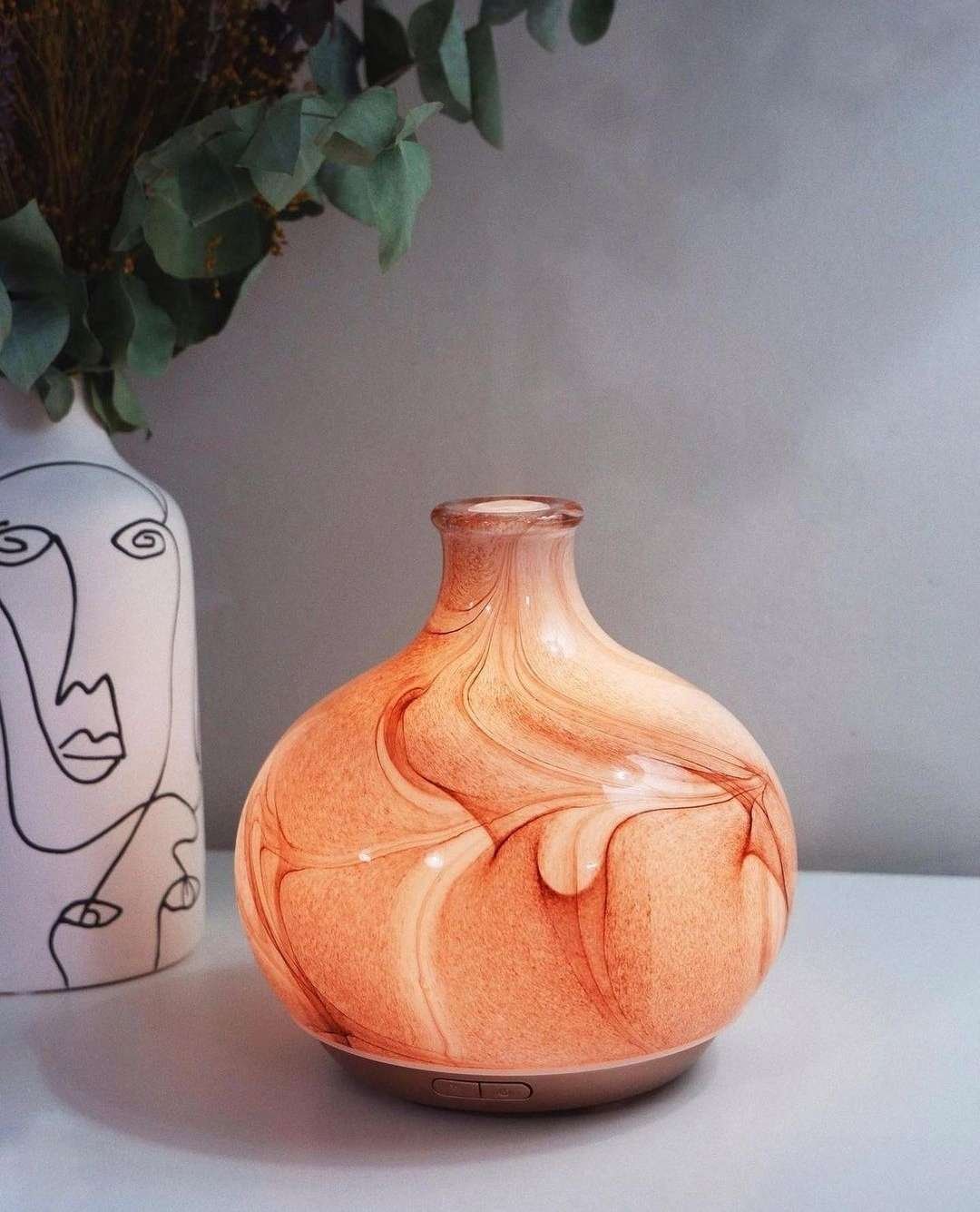 - Le sue sfumature e giochi di colore variano da un diffusore all’altro, garantendo un tocco distintivo e personalizzato per ogni ambiente.