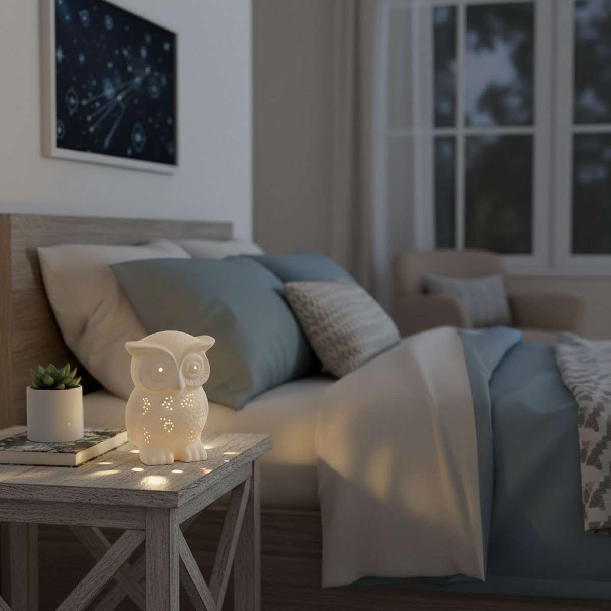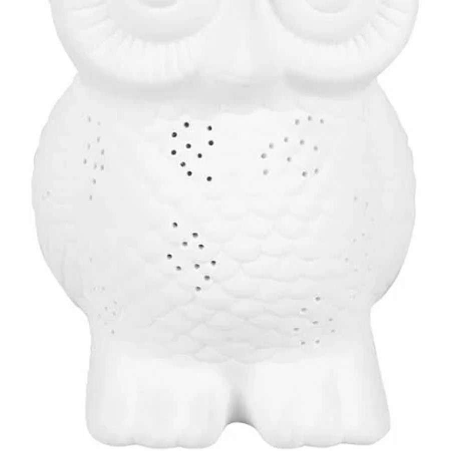 Arte e luce si fondono in questa elegante lampada gufo in porcellana bianca, perfetta per illuminare ogni ambiente.