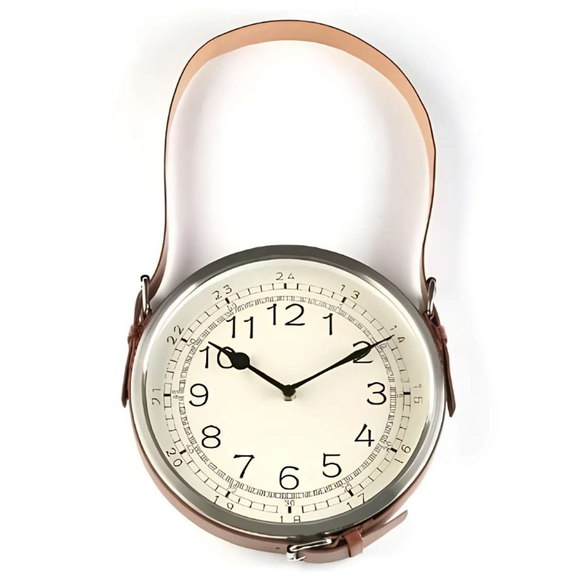 Orologio da parete Versa: design minimalista, fusione di alluminio e cuoio, diametro 27,5 cm. Eleganza e stile per ogni ambiente.