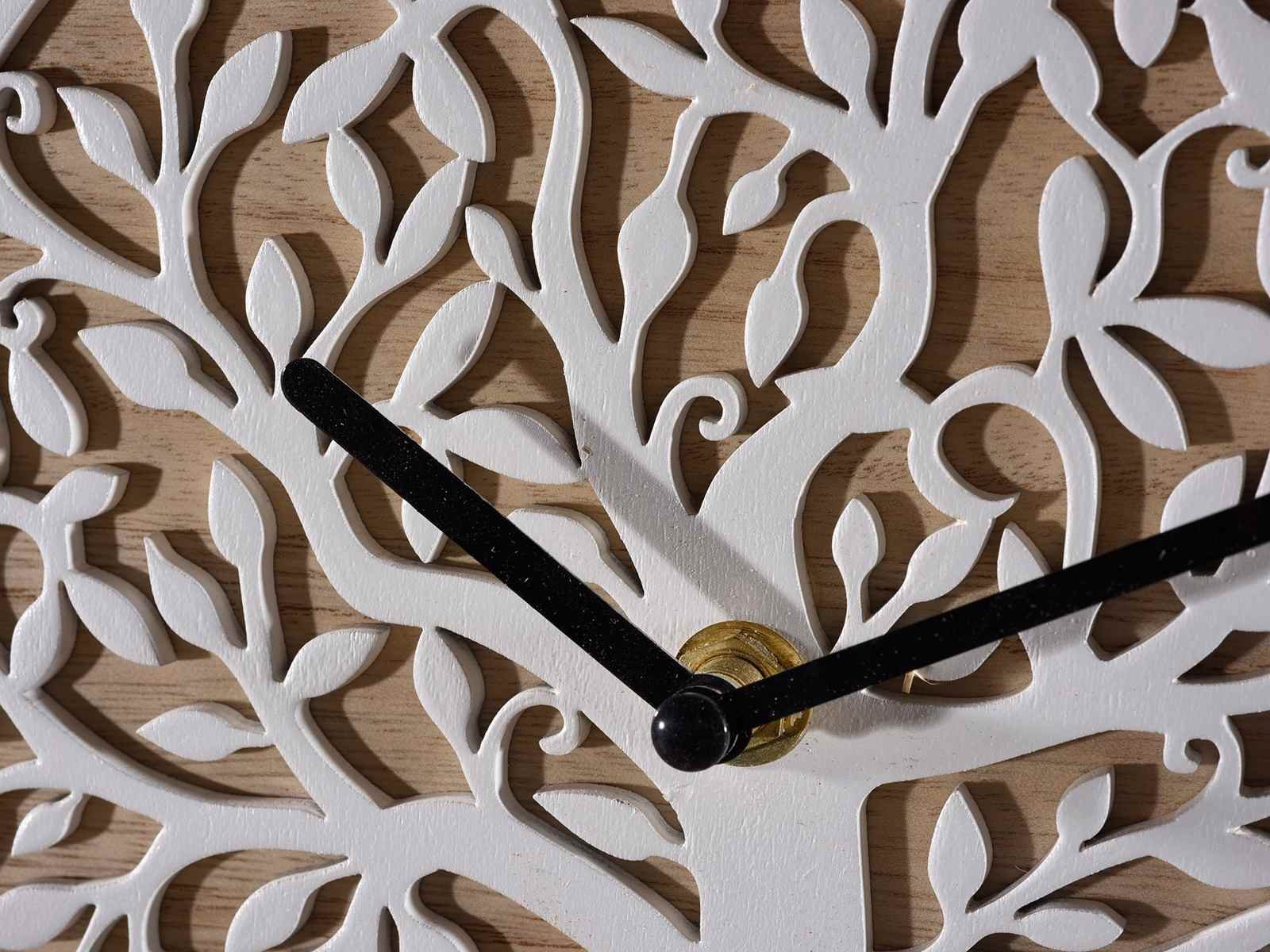 Porta armonia e bellezza nella tua casa con questo raffinato orologio da parete in legno, impreziosito da un delicato decoro dell’Albero della Vita.