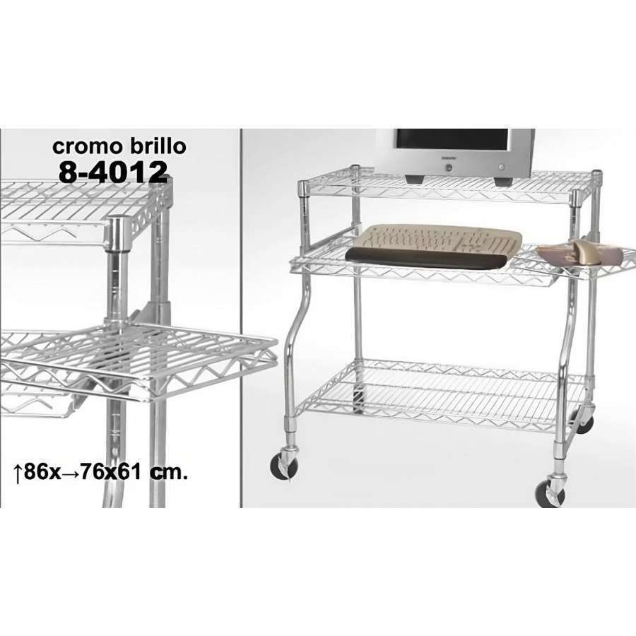 Scrivania porta computer in metallo cromato con ripiano scorrevole e ruote frenanti
