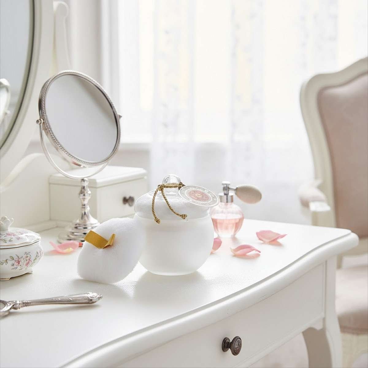 Il prodotto è contenuto in una talchiera in vetro di Boemia, un dettaglio che lo rende non solo un cosmetico di qualità, ma anche un oggetto decorativo da esporre nella propria zona beauty.